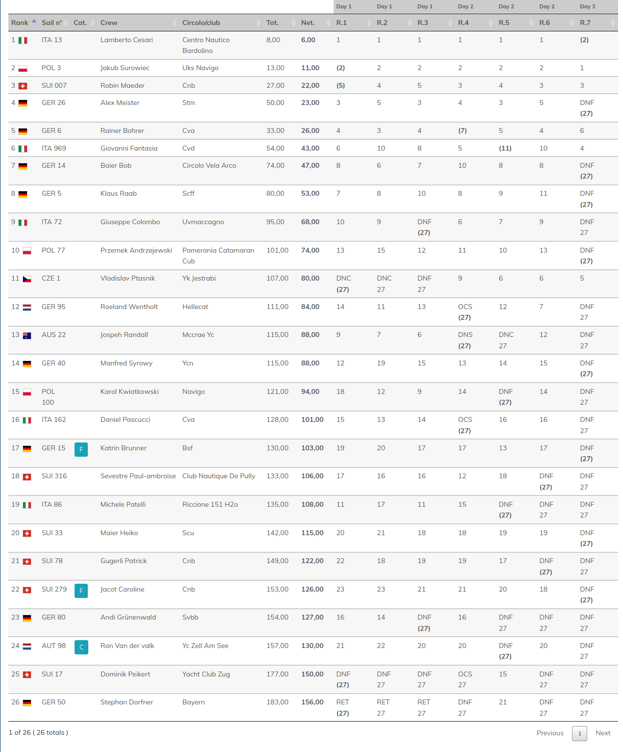 The top female sailor in the fleet was Katrin Brunner (GER) in a great 17th place, followed by Carolin Jacot (CH) in 22nd place.